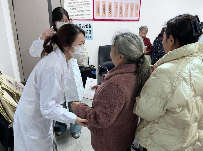在健康宣教处同样热闹非凡。规培学员们围绕老年人常见慢性病管理、冬季呼吸道疾病高发、老年人失眠困扰等居民关心的话题,通过发放宣传手册、现场示范、一对一讲解等方式,用通俗易懂的语言普及健康知识。针对部分居民提出的用药疑问、慢病康复困惑,逐一进行细致解答,引导居民树立科学的健康观念。